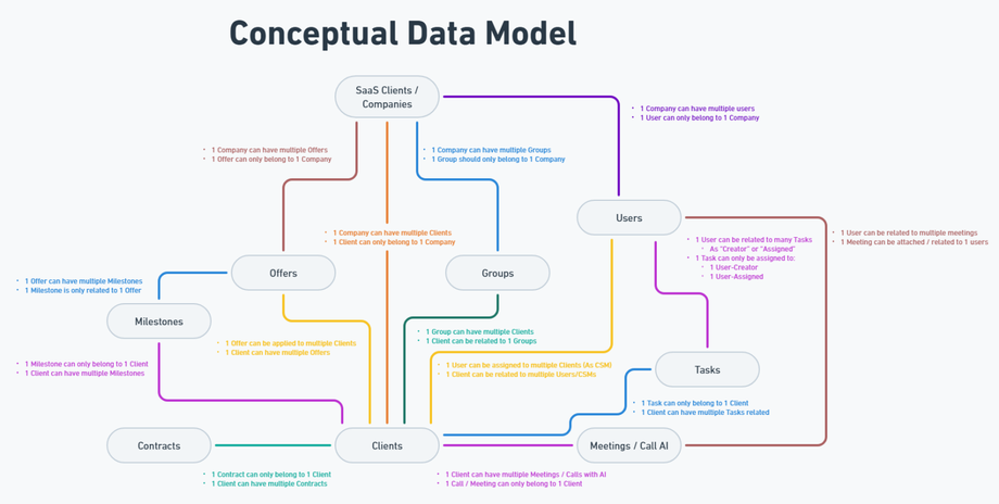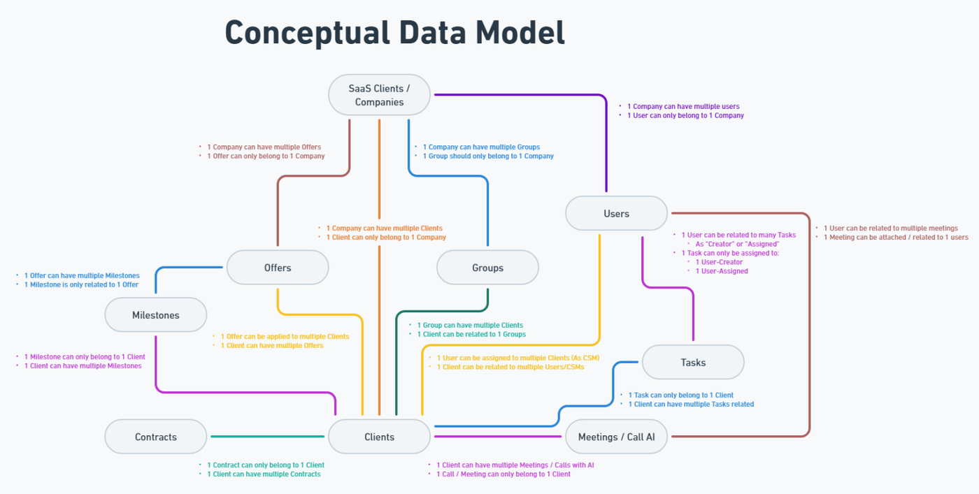 This structure helps define ownership, data hierarchy, and supports navigation, filtering, and permissions logic.