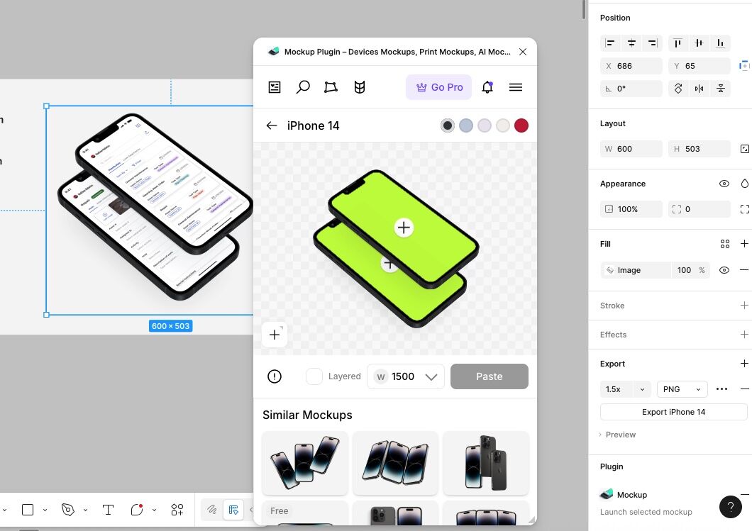 In the plugin panel, click the “+” button to select the frame (your app screen) you want to insert into the mockup.