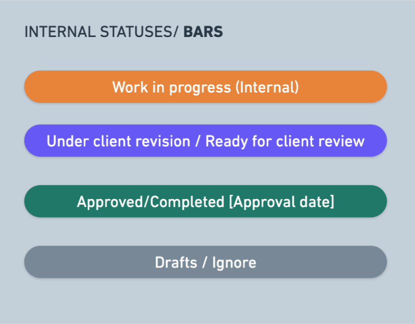 - Usage: Highlight notes that require confirmation or input from the client. These notes should be resolved and updated by the end.