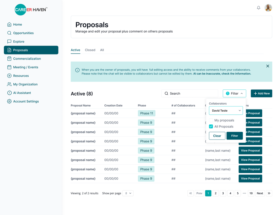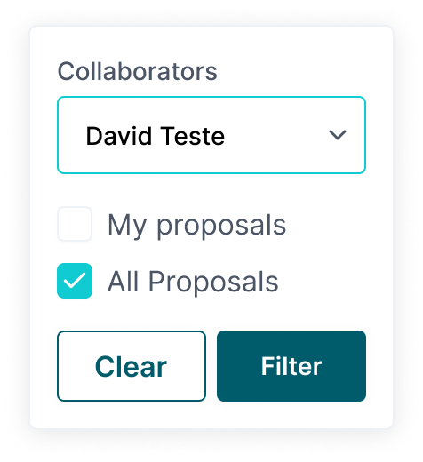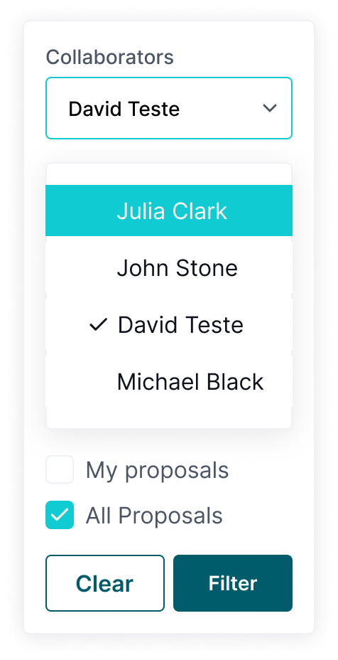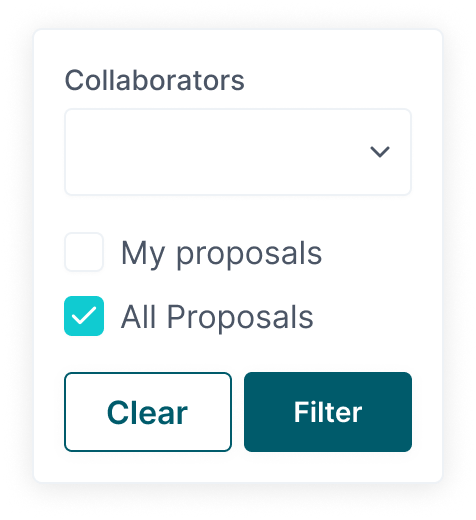 | Collapsible Collaborator Filter with NO active selection | Expanded Collaborator Filter with active selection | Collapsible Collaborator Filter with active selection |