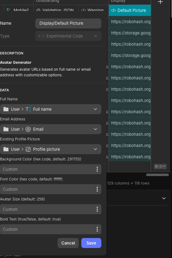 imageLink(p3) exists, the function simply returns the existing image link. - If the full name (p1) does not exist, the function uses the email (p2) as a fallback for generating the avatar.